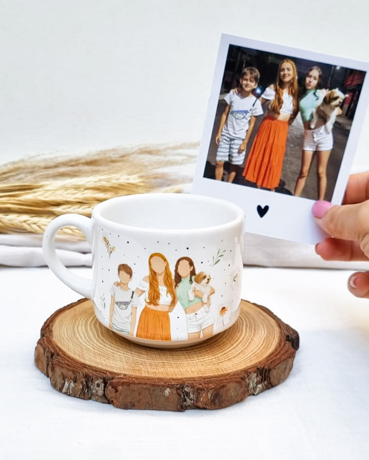 Nossa xícara ilustrada une a delicadeza com a sofisticação. É o tipo de presente que faz o coração bater mais forte logo no primeiro gole da manhã.